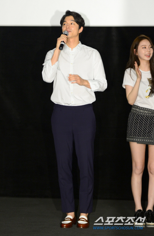 '부산행'으로 팬들을 만나는 무대 인사에서 공유는 또 한번 심플한 패션으로 팬들의 마음을 설레게 만들었다. 공유는 이날 다시 화이트 셔츠를 선택했다. 이번에는 긴 팔로.