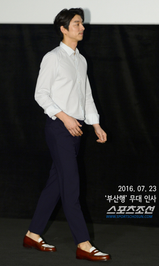 '부산행'의 언론 시사회에서 공유는 이전에 보여줬던 캐주얼한 느낌의 패션이 아닌 수트 패션으로 '남자의 정석'을 보여줬다. 그는 블랙 수트보다 유연한 느낌을 줄 수 있는 그레이 컬러를 선택해 부드러운 분위기를 냈다.