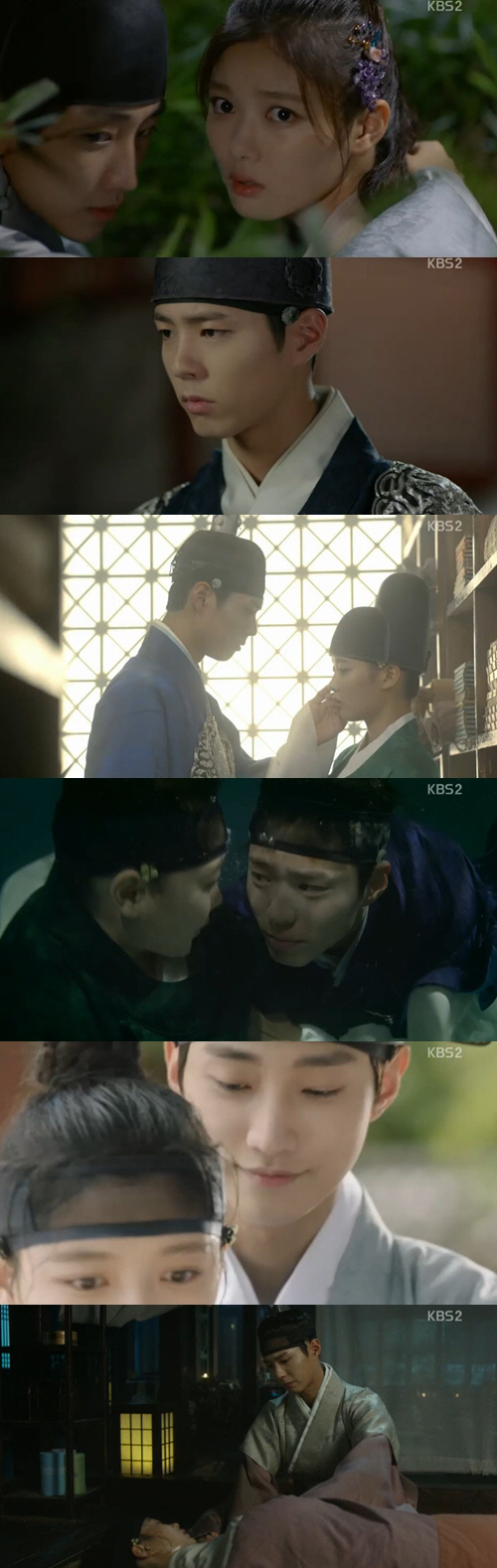 5일 밤 방송된 KBS 2TV 월화드라마 '구르미 그린 달빛'에서는 홍라온(김유정)과 이영(박보검), 김윤성(진영)의 삼각관계가 더욱 깊어진 모습이 그려졌다.