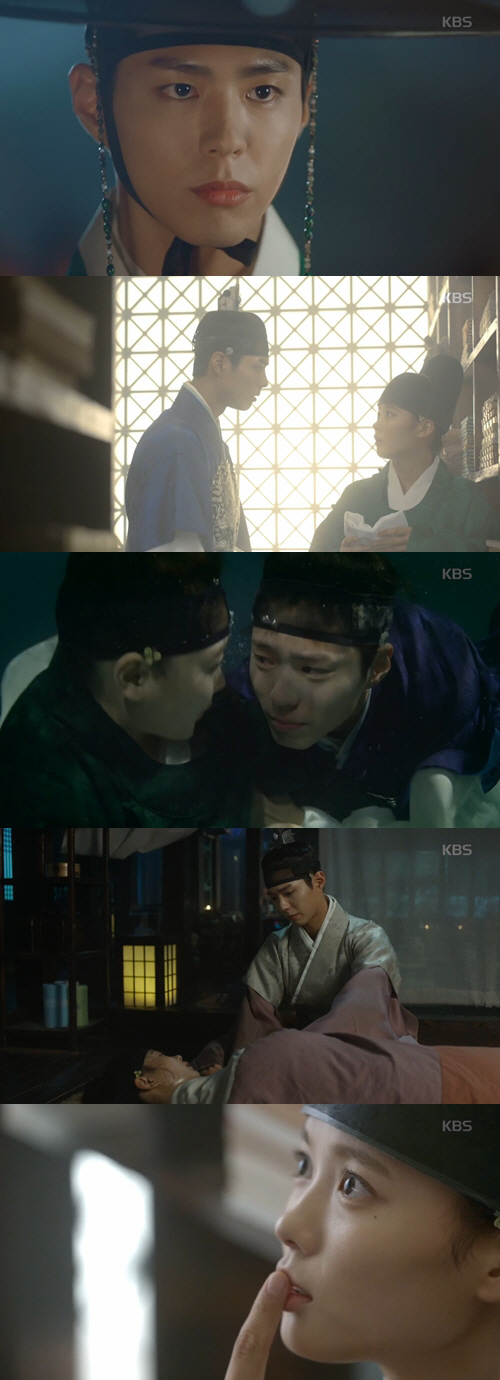 라온은 감기 기운이 있었지만, 명은공주(정혜성)의 부름을 받고 함께 연못 위에서 배를 타며 이야기를 나눴다. 명은공주는 정도령(안세하)이 자신이 아닌 나인 월희(정유민)를 연모했다는 사실을 깨닫고 벌떡 일어났고, 그 순간 배가 흔들려 라온이 물에 빠지게 됐다. 감기 기운이 있는 라온을 걱정하며 멀리서 지켜보던 이영은 바로 물에 뛰어들어 라온을 구했다. 이영은 라온에게 자신의 옷을 덮어주려고 했지만, 왕세자 신분 때문에 할 수 없었다. 라온을 구한 건 이영이었지만, 곁에서 챙긴 건 다름 아닌 윤성이었다. 모든 상황을 지켜본 윤성은 물에 젖은 채 떨고 있는 라온에게 달려가 옷을 덮어줬다. 윤성은 자신을 보고 깜짝 놀란 라온에게 "홍내관은 비밀이 들켰다 생각하냐"며 "내가 비밀을 나눠 가졌다고 생각해주면 안 되겠냐. 그래서 든든하다고 그리 믿어주면 안 되겠냐. 나 때문에 마음 졸이지도 말고 피하지도 말아라"라고 말했다.