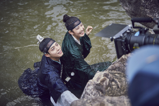그간 라온이 걱정되고 신경 쓰이는 마음을 퉁명스러운 행동으로 에둘러 표현했던 영의 진심이 드러나며 궁중 로맨스에 새로운 전환점을 맞게 된 연못씬은 지난 6월과 8월 두 번에 나눠 촬영됐다. 수중 전문 촬영장과 연못가에서 오랜 시간 진행됐지만, 공개된 사진에서도 알 수 있듯, 박보검과 김유정은 더운 여름에 오히려 시원하다며 해맑은 웃음으로 현장 분위기를 끌어 올렸다는 후문이다.