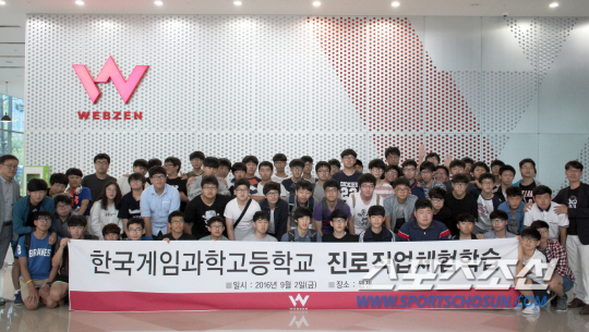 웹젠은 경기 성남 판교에 위치한 본사에서 전북 완주의 한국게임과학고등학교 학생 및 교사 158명을 초청해 진로직업체험학습 시간을 가졌다.