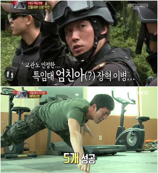장혁은 군동기들에게 자신의 특기인 절권도 시범을 보여주는가하면, 완벽한 자세로 단번에 '한 손 엄지손가락으로 팔 굽혀펴기'에 성공하며 강철 체력을 자랑하기도 했다. 요인경호 훈련에서는 영화의 한 장면 같은 기술로 상대를 제압해 유격왕 칭호가 괜히 나온 것이 아님을 입증했다. 반면 장혁은 씨름이나 족구 등에서는 실수를 연발하는 등 의외의 허당 매력을 발산하기도 했다.