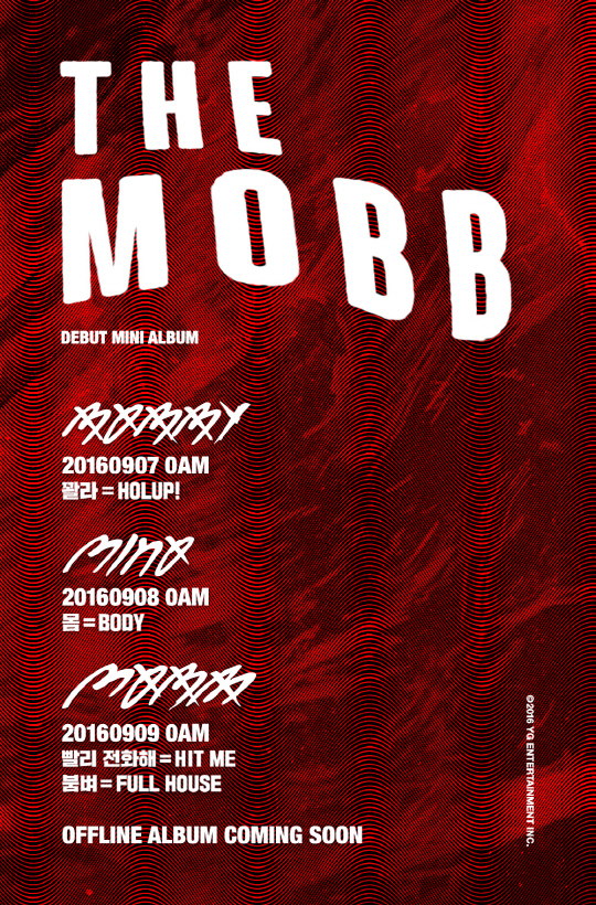 앞서 YG는 9월 7일 바비 솔로곡 '꽐라', 9월 8일 송민호 솔로곡 '몸, 9월 9일 송민호와 바비의 유닛 'MOBB'의 더블 디지털싱글 '빨리 전화해', '붐벼' 공개까지 3일 연속 파격 프로모션을 예고한 바 있다.
