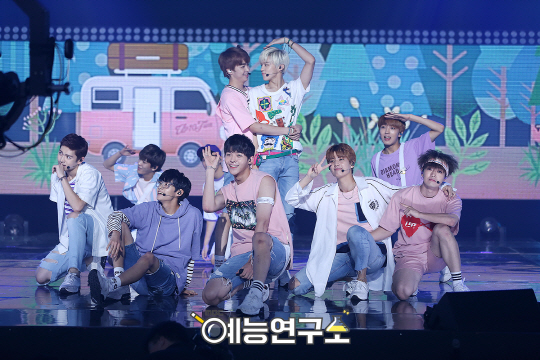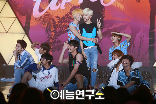 여름에 앨범을 냈던 만큼, 업텐션은 시원한 패션을 주로 선보여왔다. 오버핏 슬리브리스를 활용한 패션을 주로 보여줬는데, 패턴이나 그래픽이 크게 들어간 아이템을 선택해 눈에 확 들어오는 스타일링을 연출했다.