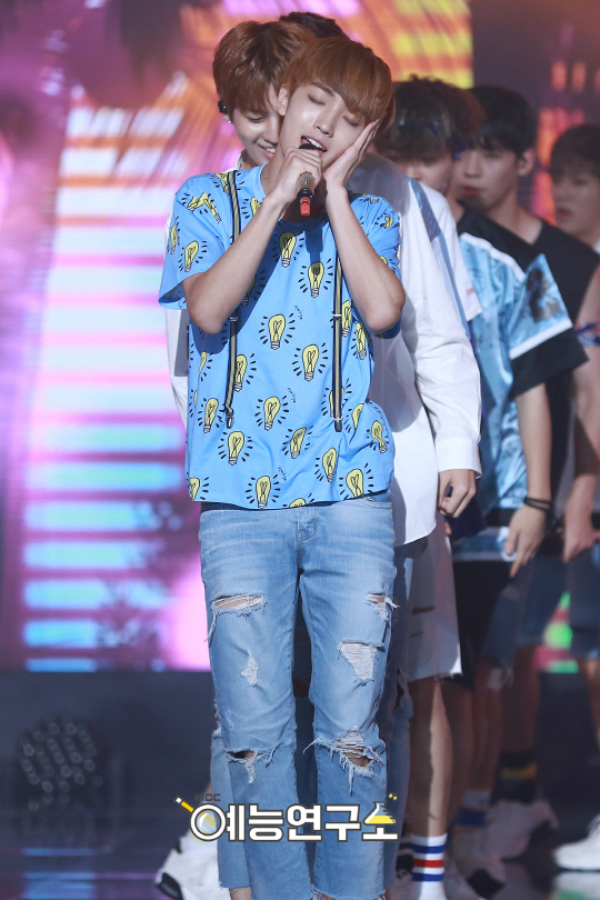 진후와 비토, 그리고 웨이는 이번 '오늘이 딱이야' 무대에서 머리에 포인트 아이템으로 스타일을 완성한 멤버들이다. 진후는 모자, 비토는 헤어 밴드, 웨이는 안경으로 '꾸러기 패션'을 보여줬다.