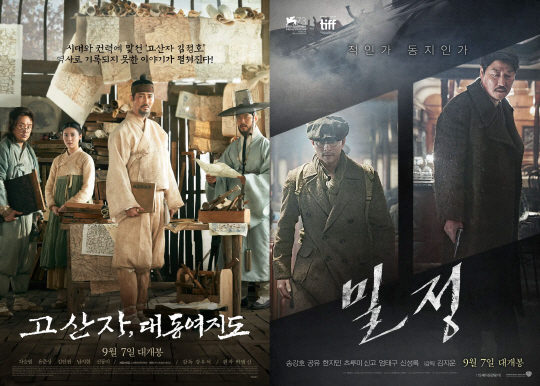 '고산자'와 '밀정'의 대결은 인기 감독과 톱배우의 만남이라는 부분에서 비슷한 점이 많다. 송강호와 김지운 감독, 차승원과 강우석 감독의 조합은 언제 봐도 기대감을 높이는 점이다. 베니스국제 영화제에 초청돼 해외 매체들에게까지 호평을 받은 '밀정'과 대규모 국내 시사회를 통해 입소문을 타고 있는 '고산자'가 어떤 승부를 펼칠지 관심이 모아지는 것도 그래서다.