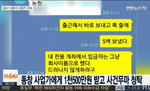 앞서 공개된 스마트폰 메시지에서 김씨는 김형준 부장검사에게 "5백 보냈다. 입금자는 회사 이름으로 했다. 드러나지 않게 하려고"라는 톡을 보냈다. 김형준 부장검사가 보낸 계좌 역시 본인의 것이 아닌 것으로 알려졌다.