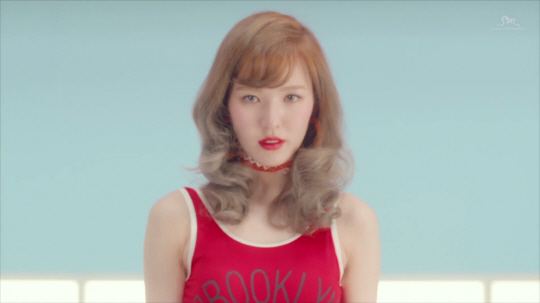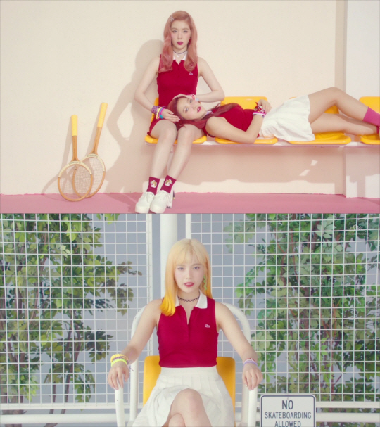 레드벨벳은 레드와 화이트 컬러를 활용해 발랄한 테니스걸 컨셉 또한 선보였다. 칼라가 있는 새빨간 슬리브리스에 화이트 테니스 스커트를 매치한 레드벨벳은 은근한 섹시미까지 느껴지게 했다. 슬리브리스에도 화이트 컬러로 칼라에만 배색이 들어가 컬러의 조화가 돋보였다.