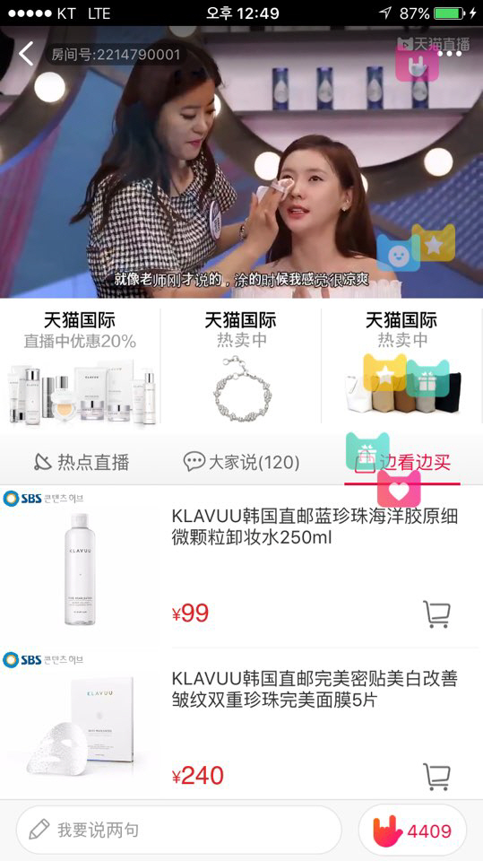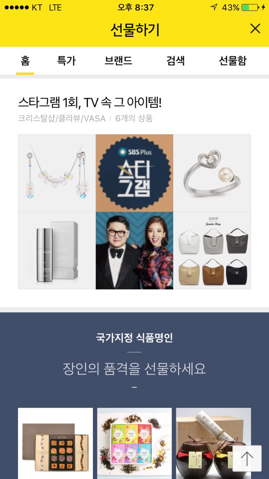 중국에서 뿐만 아니라 국내에서도 실시간 구매가 가능하다. 카카오톡-카카오 선물하기 탭에서 방송에 나왔던 제품들을 확인할 수 있다. [스포츠조선 뉴미디어팀 이한나 기자] 사진=SBS 플러스 '스타그램'