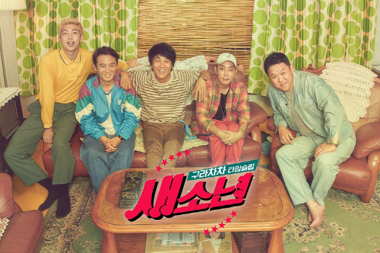 [스포츠조선닷컴 이지현 기자] KBS 2TV 추석 특집 파일럿 예능 '구라차차 타임슬립-새소년' (이하 '새소년')의 1차 티저 영상 '첫만남에 대하여' 편이 공개됐다. 공개된 영상에는 김구라, 차태현을 비롯해 영화배우 김병옥, 젝스키스의 은지원, 방탄소년단의 랩몬스터가 등장. 어느 곳에서도 본 적 없는 다섯 명 멤버들의 조합이 시선을 사로잡았다.