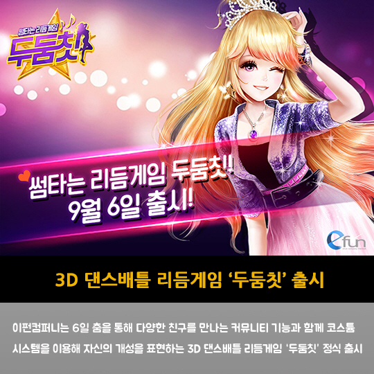 이펀컴퍼니는 6일 춤을 통해 다양한 친구를 만나는 커뮤니티 기능과 함께 코스튬 시스템을 이용해 자신의 개성을 표현하는 3D 댄스배틀 리듬게임 '두둠칫' 정식 출시