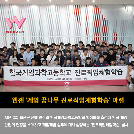 - 웹젠 '게임 꿈나무 진로직업체험학습' 마련