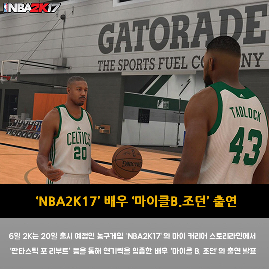 6일 2K는 20일 출시 예정인 농구게임 'NBA2K17'의 마이 커리어 스토리라인에서 '판타스틱 포 리부트' 등을 통해 연기력을 입증한 배우 '마이클 B. 조던'의 출연 발표