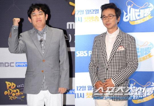 7일 오후 MBC 에브리원 'PD이경규가 간다' 제작발표회가 서울 여의도 CGV에서 열렸다. 이경규가 프로그램 기획자이자 PD에 도전해 직접 기획, 연출, 출연까지 1인 3역을 맡아 선보이는 리얼 예능 프로그램. 이경규는 프로그램의 수장인 만큼 제작발표회 패션에도 신경썼다. 가장 눈에 들어온 것은 역시 체크 셔츠. 블랙 앤 화이트의 깅엄체크 셔츠는 그레이 컬러의 빅 도트 프린팅이 들어간 디테일이 돋보였다. 거기에 편안한 느낌의 화이트 팬츠를 매치하고 셔츠는 오버스타일로 바지 밖으로 내어 입었다. 재킷의 길이와 딱 맞아 떨어져 어색하지 않다. 재킷은 그레이 컬러에 카멜 브라운 버튼으로 포인트를 준 디자인을 선택했다. 체크와 브라운 포인트로 한결 가볍고 캐주얼한 느낌이 산다. 구두는 브라운 색의 태닝이 들어간 블랙 레더 로퍼를 사용해 수트의 무거운 느낌을 덜어냈다.