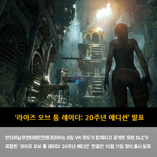 반다이남코엔터테인먼트코리아는 8일 VR 모드가 탑재되고 공개된 모든 DLC가 포함된 '라이즈 오브 툼 레이더: 20주년 에디션' 한글판 10월 11일 정식 출시 발표