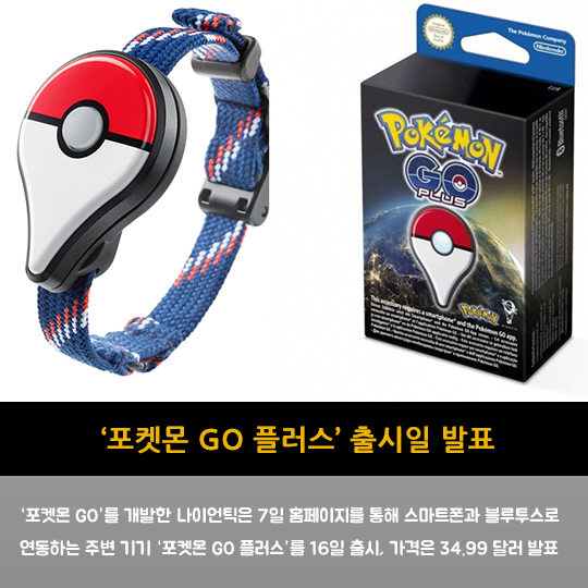 '포켓몬 GO'를 개발한 나이언틱은 7일 홈페이지를 통해 스마트폰과 블루투스로 연동하는 주변 기기 '포켓몬 GO 플러스'를 16일 출시, 가격은 34.99 달러 발표