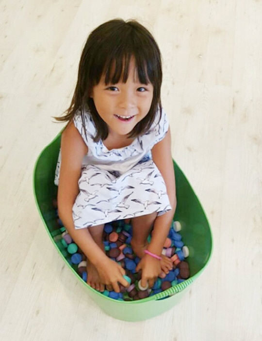 원피스를 입고 귀요미 매력을 뽐내고 있는 추사랑은 커다란 통에 들어가 만족한 듯 함박 미소를 지어보이고 있어 보는 이들까지 덩달아 미소짓게 했다.
