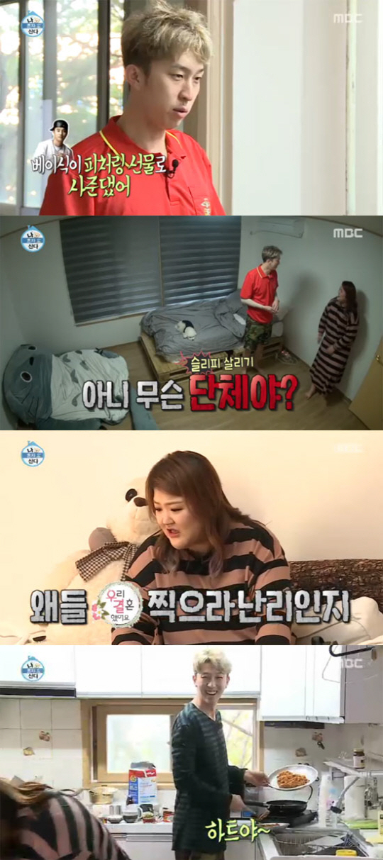 캐리어를 들고 들어오는 이국주에게 슬리피는 "여기 살려고? 우결 찍는 거야?"라며 반겼다. 정색하는 이국주는 "무슨소리냐"라며 화를 냈다. 회사 대출로 산 집과 TV, 에어콘 등의 사장님 협찬으로 꾸며진 슬리피의 집은 미니멀 그 자체였다.