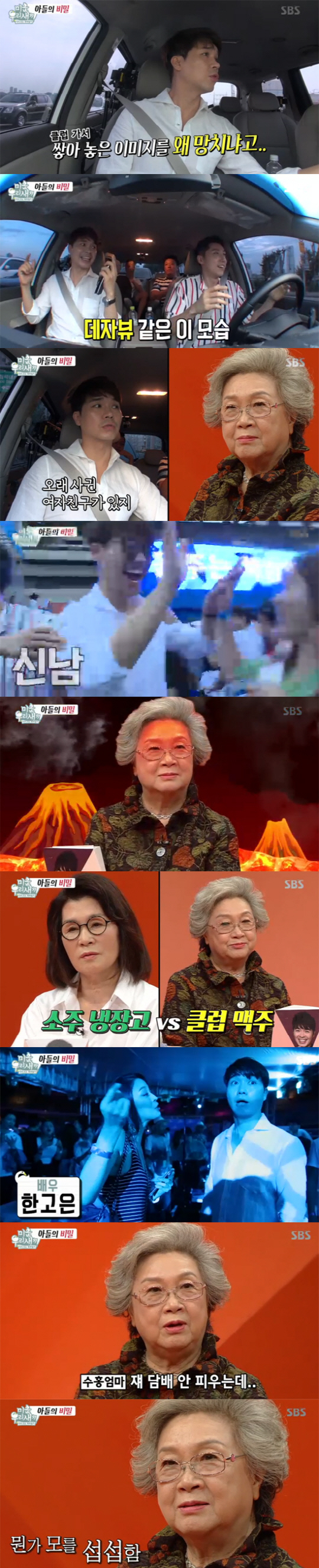 이를 지켜본 박수홍 엄마는 "궁상 떨면서 집에서 소주 먹는 것 보다 나가서 노는게 나을것 같다"고 말하며 두둔했고, 이를 들은 김건모 엄마는 "그래도 안에서 먹는게 낫다"고 서로의 아들을 두둔하는 모습으로 신경전을 벌여 또 한번 웃음을 유발했다.