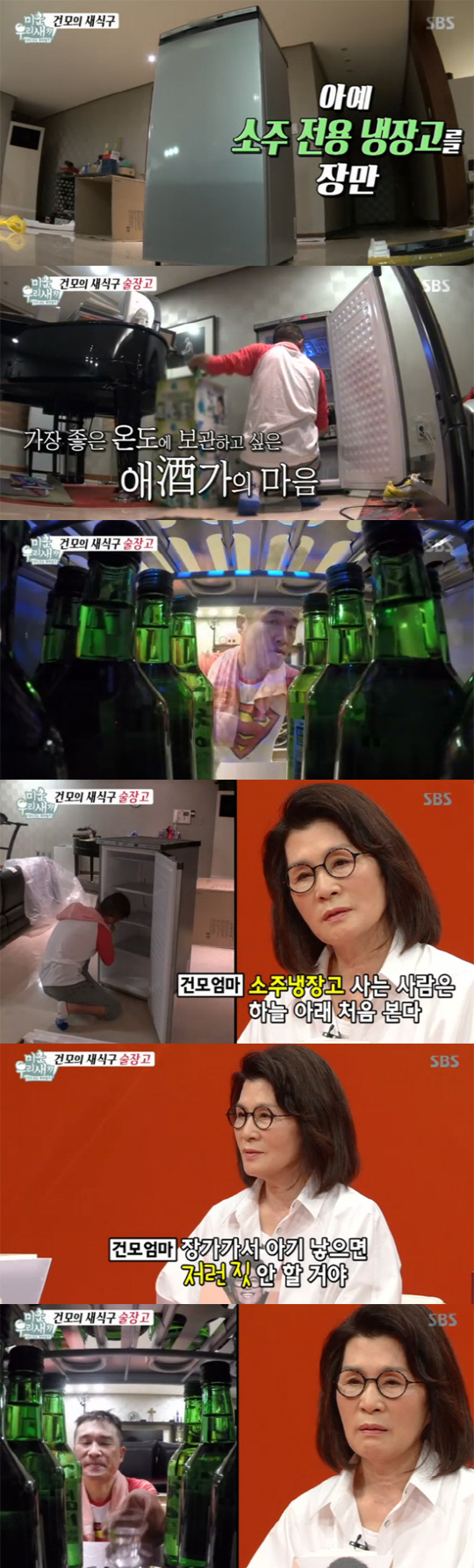 9일 방송한 SBS '미운우리새끼'에서는 소주 전용 냉장고를 엄마 몰래 구매한 김건모와 야외 클럽을 찾은 박수홍의 에피소드가 전파됐다.