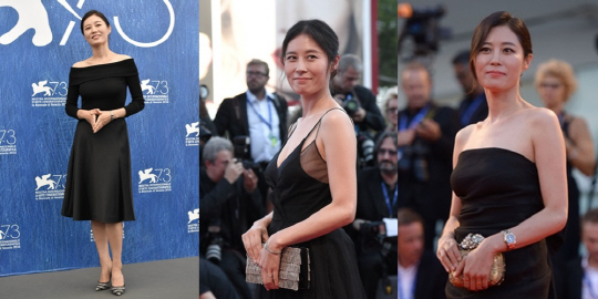 '한국인 최초'라는 타이틀로 빛난 문소리의 패션 감각은 베니스를 아름답게 수놓았다. 3가지 블랙 드레스를 선보인 문소리는 보는 이들을 내내 감탄하게 만들었다. 깔끔함이 돋보이는 오프숄더 미디 드레스와 섹시함이 강조된 스트링 슬립 드레스, 그리고 튜브톱으로 아름다운 선을 드러내 한국의 미를 베니스에 전파했다.