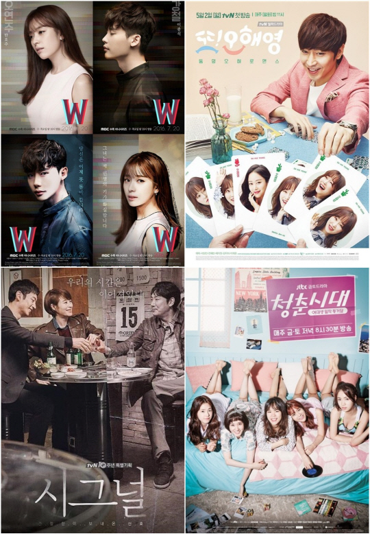 반면 패기 넘치는 소재들을 들고 나선 작가들에 대중은 환호했다. '시그널'의 김은희, '또 오해영' 의 박해영, 'W'의 송재정, '청춘시대' 박연선 등이 그 주인공이다. '싸인' '유령'의 김은희는 '시그널'을 통해 무전기로 과거의 인물과 교신하며 미제 사건들을 해결해낸다는 참신한 소재로 장르극의 신기원을 이끌었으며 '나인' '인현왕후의 남자' 송재정은 웹툰과 현실을 오간다는 판타지적 소재로 듣도보도못한 'W'라는 화제작을 만들어냈다. 박해영 작가의 '또 오해영'은 톱스타 하나 내세우지 않았지만 현실 공감 스토리와 미래에서 과거를 회상한다는 판타지적 요소를 적절히 버무려 큰 인기를 끈 바 있다.
