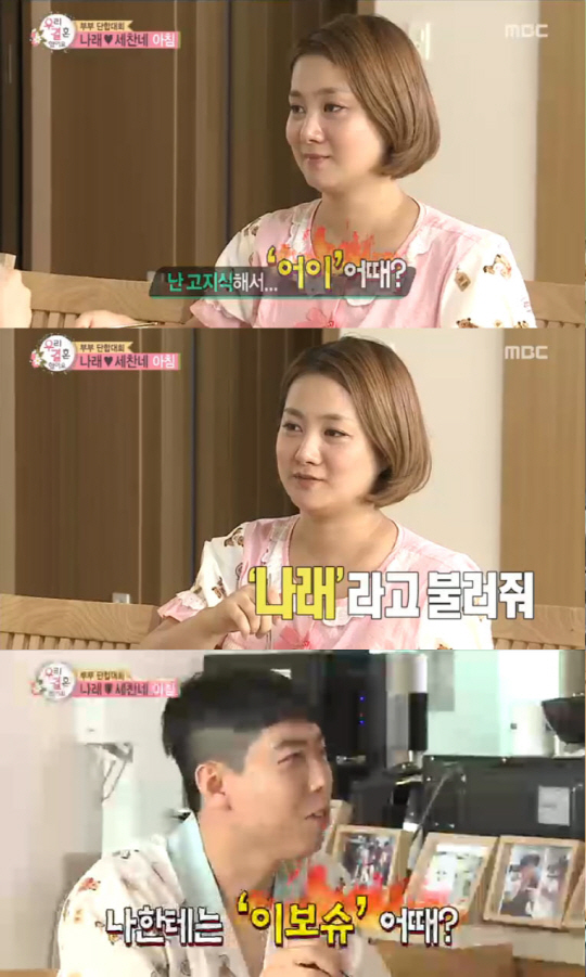 이에 양세찬은 "어이는 '어여쁘고 이쁜(?) 나래'라고 생각하면 된다"고 말해 애칭의 뜻을 말해 박나래를 행복하게 했다.