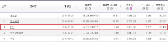 이는 개봉 32일째 이뤄 낸 성과라 더욱 주목된다. 그 동안 '터널'은 다수의 쟁쟁한 작품들 사이에서도 총 28일간 박스오피스 1위를 차지하며 2016년 최장기간 연속 박스오피스 1위라는 결과를 기록한 바 있다. 이어 개봉 4주차에도 변함없는 흥행세를 지속해 톱3에 올랐다.