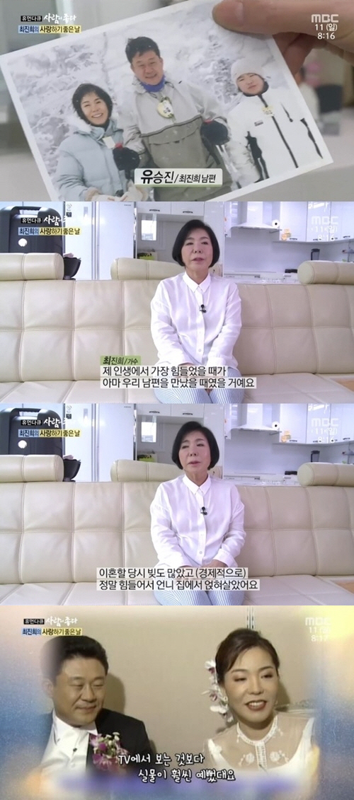 가수 최진희가 남편과의 결혼 스토리를 공개했다.