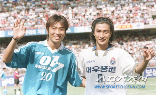 '라이언킹'이라는 별명으로 소녀팬들의 비명을 부르던 20대 시절, 이동국은 당대 최고의 스타만이 선다는 앙드레김 패션쇼 무대에도 섰다. 데뷔 시절 '꽃미남 선배' 안정환과 나란히 찍은 사진도 있다.