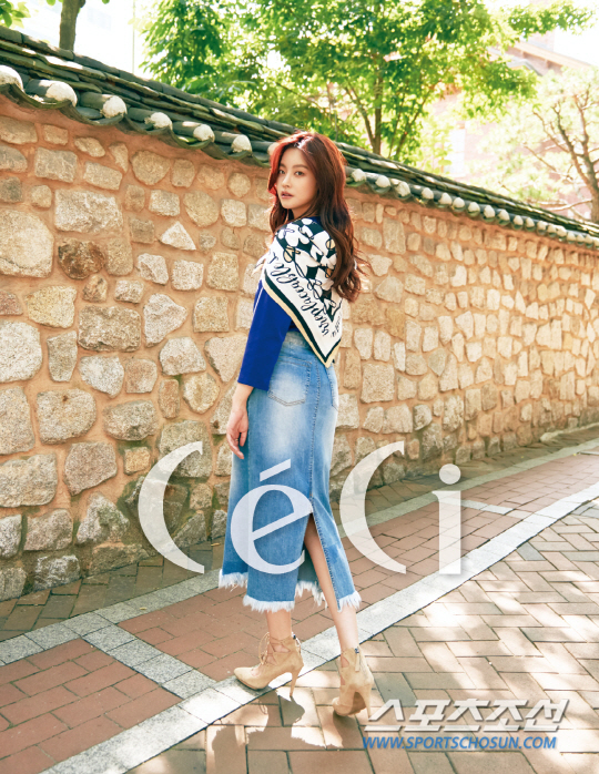 요즘 같은 날씨에는 아우터를 챙기기는 그렇고 두꺼운 톱을 입자니 답답하기 일쑤. 그런 날에는 스카프를 깨내보자. 오연서는 롱 데님 스커트에 블루 컬러 8부 탑을 매치하고 베이지 컬러의 스트랩 힐과 함께 스타일링했다. 거기에 한 끗 차이로 가을 느낌을 낸 아이템이 바로 화이트 패턴 스카프! 강한 바람을 막아주는 용도로도 스타일링에 센스있는 포인트로도 딱 좋다. 가볍에 넥 라인 근처에 매듭을 지어줘도 예쁘게 연출할 수 있다.
