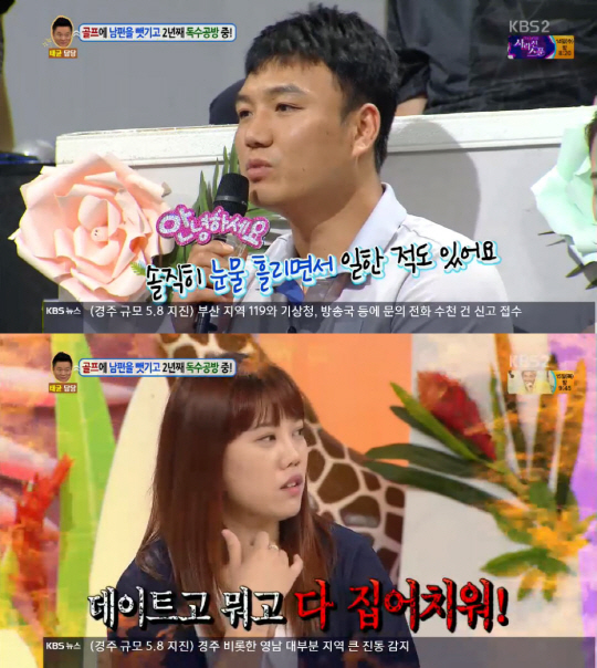 또 이 남편은 "일 할때 지장이 없냐"는 질문에 "솔직히 눈물을 흘리면서 일한 적도 있다. 스트레스가 해소되서 스크린골프장을 간다"고 말했다.