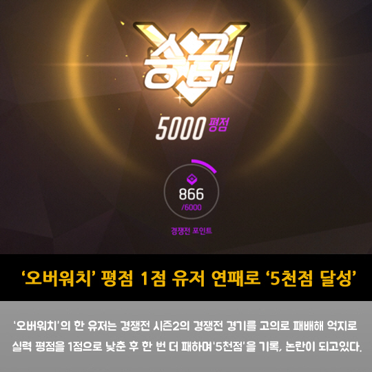 - 오버워치 평점 1점 유저 연패로 '5천점 달성'