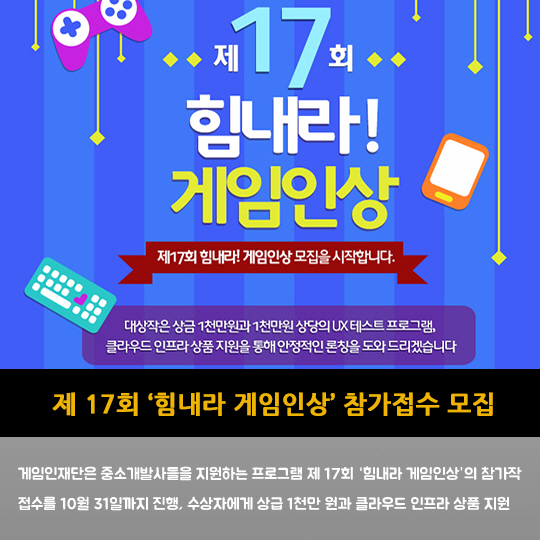 - 제 17회 '힘내라 게임인상' 참가접수 모집
