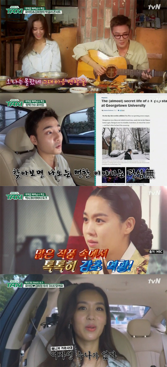 13일 방송된 tvN'현장토크쇼 택시'는 '국대급 매력남녀' 특집으로 로이킴과 김희정이 탑승한 가운데, 사상 최초로 이영자, 오만석 MC 없이 단 둘이서만 택시를 타는 '아바타 인 택시'로 진행됐다.