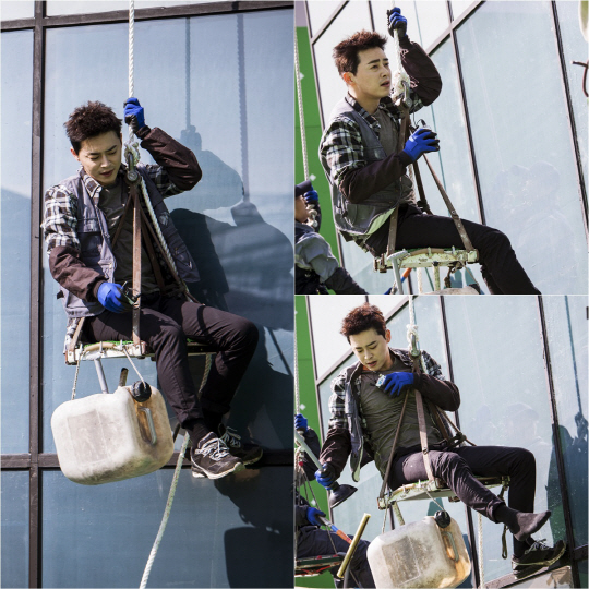 SBS 수목극 '질투의 화신' 측은 14일 촬영 스틸컷을 공개했다. 공개된 사진에는 옥상 외벽에 아슬아슬하게 매달린 채 한 손에 뚫어뻥을 든 조정석의 모습이 담겼다.