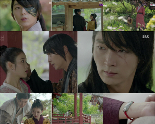 왕욱은 글자를 익히는 해수 옆에서 그녀의 손을 잡고 글자를 가르쳐주면서 자신의 이름인 '욱'을 써줬고, "내 이름 욱. 아침에 뜨는 해를 뜻한다. 붉은색은 화를 막아주고 또 깊은 인연을 뜻하기도 한다"며 상처가 있는 손목에 인연의 표시인 팔찌를 묶었다. 그리곤 "약속해