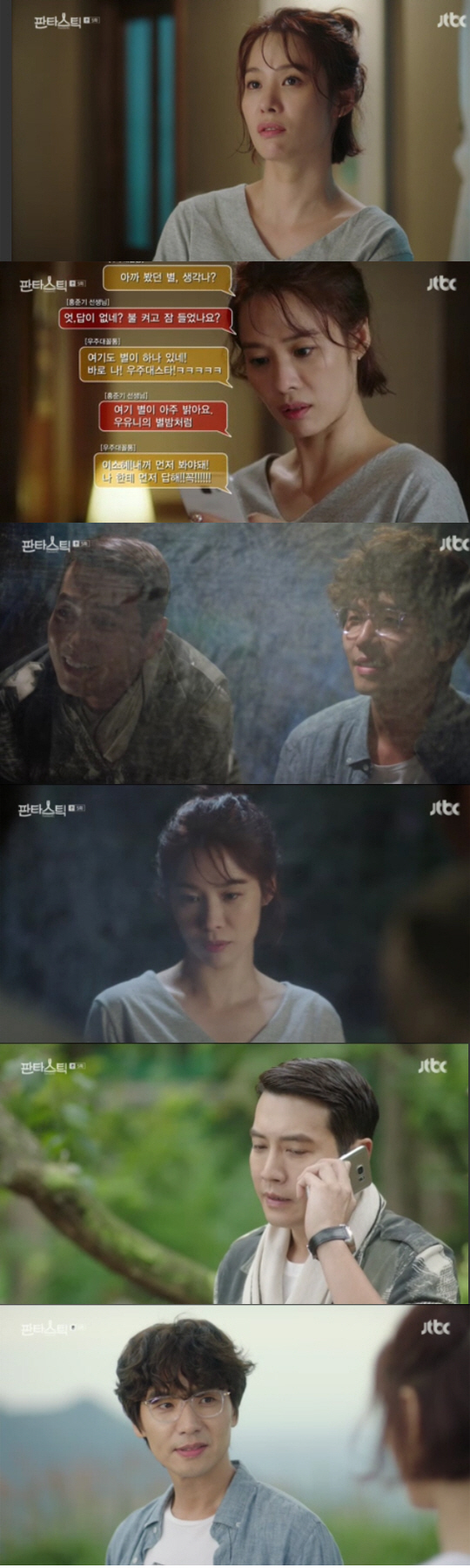 16일 JTBC 판타스틱에서 이소혜(김현주 분)와 류해성(주상욱)-홍준기(김태훈)은 산장에서 밤을 지샜다. 이소혜가 방에서 집필에 전념하고, 류해성과 홍준기는 밖에서 모기장만 치고 잠을 청했다.