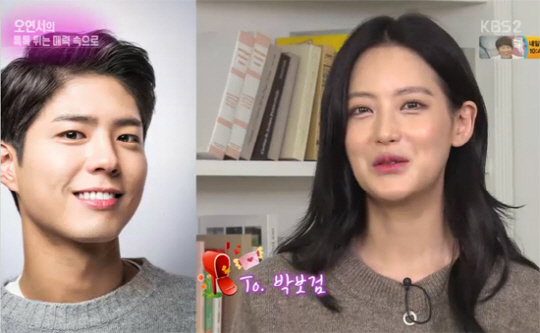 오연서는 박보검을 뽑으면서 유독 얼굴이 빨개지고 웃음이 많아진 모습. 리포터 김생민은 "유독 좋아한다"며 영상편지를 요구했다.