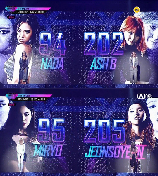 래퍼 애쉬비와 전소연이 각각 미료와 나다를 꺾고 파이널에 올랐다.