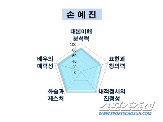 종합:손예진은 5개 부문에서 고루 높은 점수를 받아 연기력으로는 흠 잡을데 없는 배우라는 사실을 입증했다. 마음을 울리는 진정성 있는 연기에 자문단들이 엄지를 추켜세웠다. 다만,역사를 소재로 한 일대기의 특성상 캐릭터가 다소 설명적이었다는 점에 대해 자문단 중에 "연기가 평이하고 설명적이었다"는 지적이 나오기도 했다. 하지만 전작 '비밀은 없다'에서 보여준 손예진의 연기에서 이미 존재감 있으며 극성이 느껴지는 캐릭터의 소화능력은 입증되었다고 볼 수 있다.