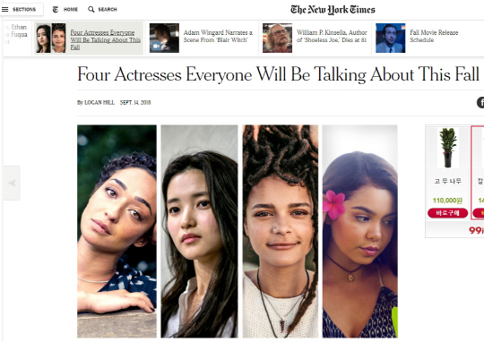 [스포츠조선 고재완 기자] 신예 김태리가 세계적인 영향력을 자랑하는 미국의 종합일간지 '뉴욕타임스'가 선정한 '올가을 주목해야할 여배우 4인'에 선정됐다.