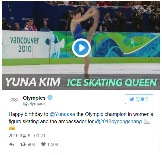 IOC는 지난 5일 김연아의 생일에 맞춰 페이스북에 현역선수시절 올림픽 무대에 섰던 김연아의 모습을 영상으로 게재했다. "피켜스케팅 퀸 김연아"라는 자막으로 시작하는 영상은 여자 피겨 스케이팅 신기록을 세웠던 2010년 밴쿠버 올림픽 경기 영상으로 꾸며졌다.