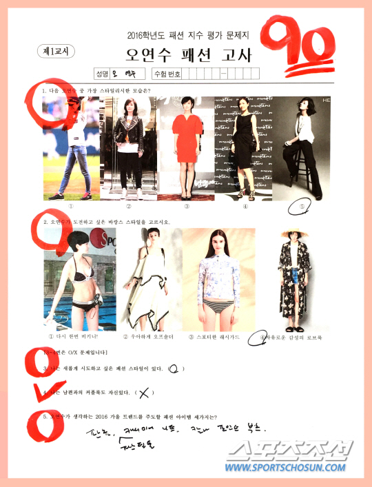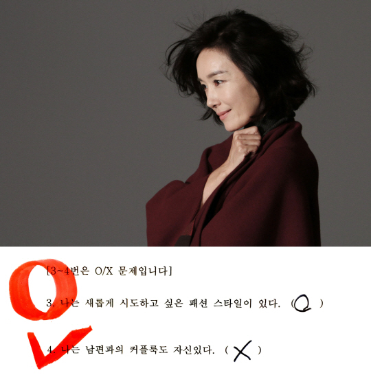 배우 오연수의 패션 고사입니다. 어쩜 문제를 푸는 모습까지 우아한걸까요. 결과는 90점입니다. 어떤 문제가 마이너스가 되었을지 함께 볼까요.