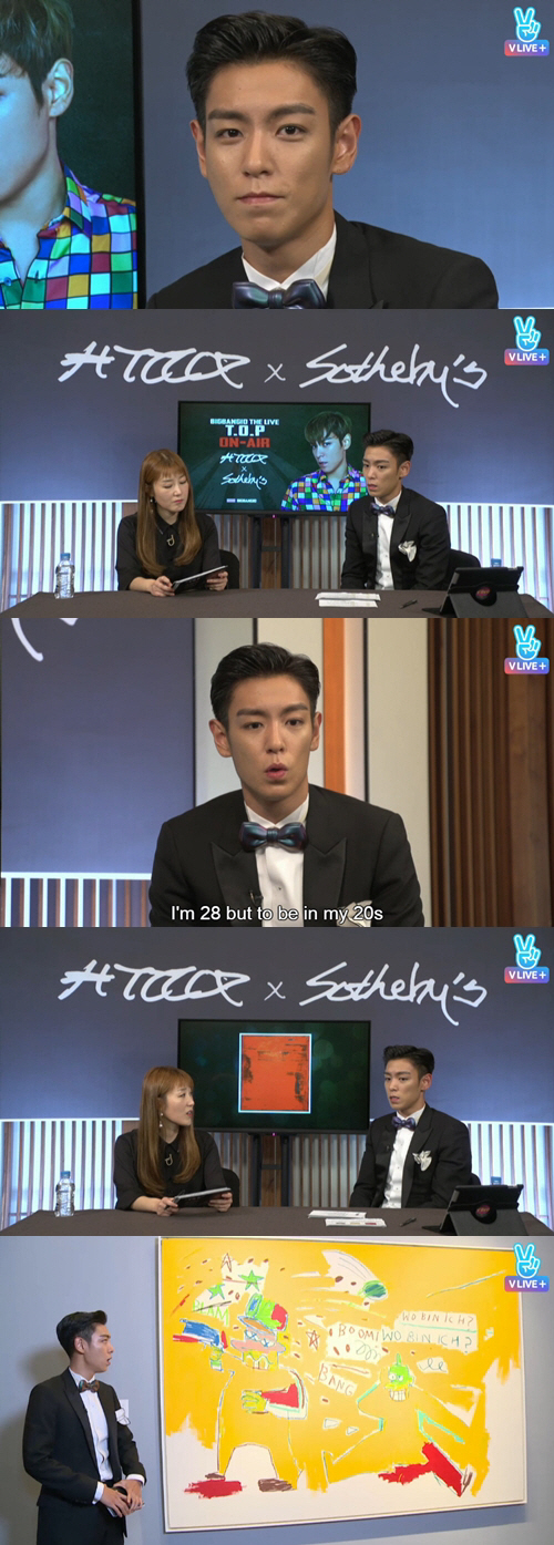 탑은 19일 오후 포털 사이트 네이버 'V LIVE+'를 통해 '#TTTOP X Sotheby's' 생방송을 진행했다.