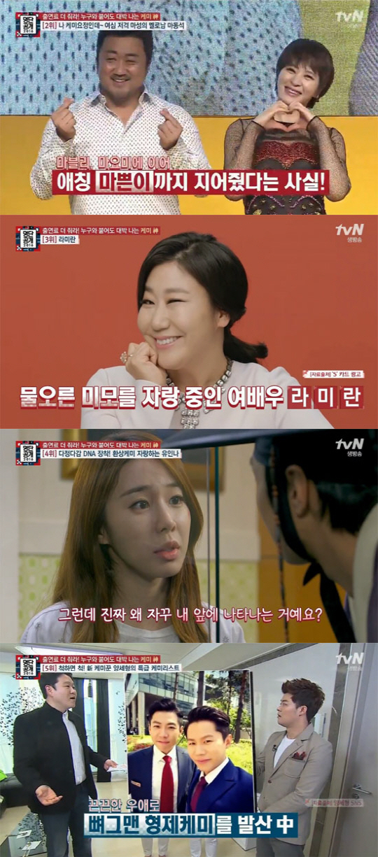 여자배우들이 함께 일하고 싶은 배우로 꼽는 것은 물론 남자배우들도 홀딱 반하게 만드는 '마요미' 마동석이 2위다. 충무로 감독들도 인정한 케미의 신이다. 대선배 최민식과 찰떡 호흡을 자랑한 마동석은 '나쁜녀석들' 김상중, 박해진, 조동혁과도 남다른 케미를 자랑했다. 뿐만 아니라 최근 종영한 '38사기동대'에서 서인국과 '국민 사기꾼 커플'로 불리기도 했다. 또한 김혜수, 정유미 등 여자 배우와도 다정다감한 모습을 선보이며 실제로도 꿀케미를 자랑한다. 믿고보는 케미요정 마동석이다.