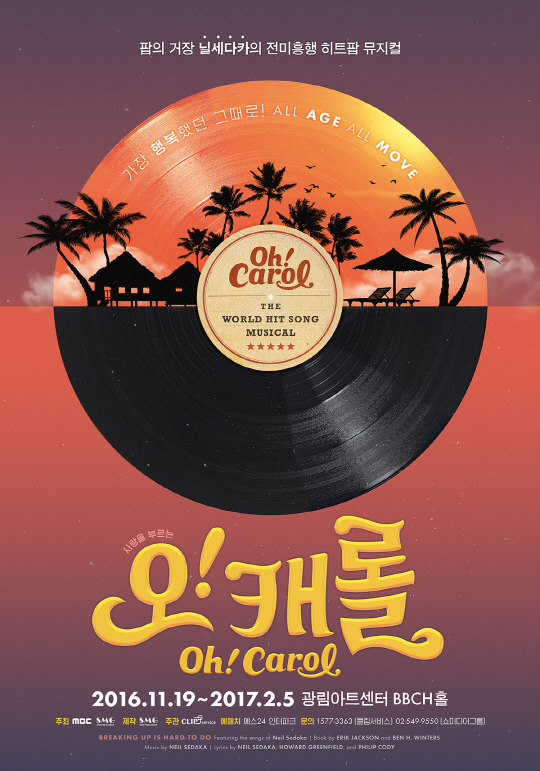 1960년대를 풍미한 가수 닐 세다카의 히트곡으로 이루어진 팝 뮤지컬 '오! 캐롤'(원제: Breaking Up is Hard To do)이 국내 초연된다.