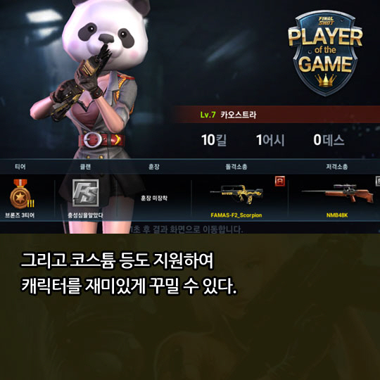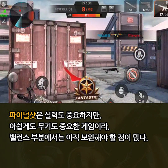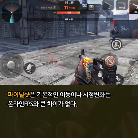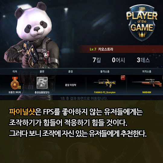 그리고 파이널샷은 FPS 좋아하지 않는 유저들은 조작하기가 힘들어 적응하기 힘들것이다. 그러다 보니 조작감에 자신있는 유저들에게 추천한다.