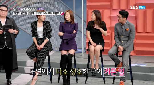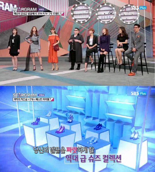 20일 오후 11시 SBS 플러스의 '스타그램 시즌1(이하 스타그램)'3회 에선 여자들의 로망인 구두를 다뤘다. 스타일 마스터인 정윤기가 선택한 FW 구두 트렌드 3, 베스트 아이템 7개를 짚어보며 스타일 아이콘 손담비, 패션 미생 장도연, 메이크업 아티스트 수경, 뷰티 컨설턴트 도윤범이 심도 깊은 구두 토크를 나눴다.